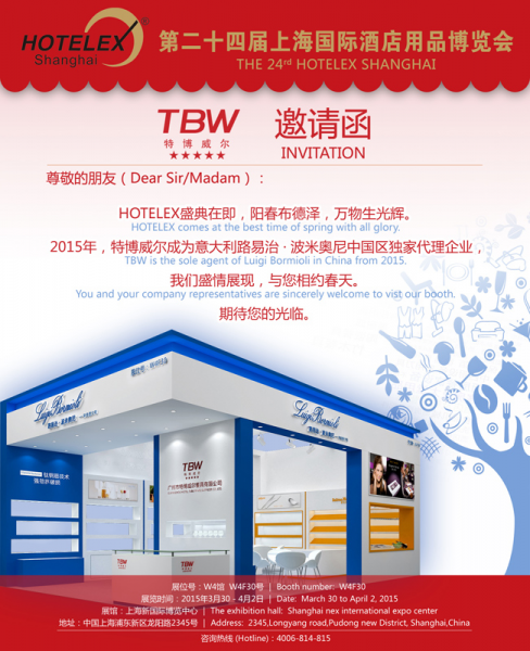 2015年,特博威尔成为意大利路易治·波米奥尼中国区独家代理企业,盛会当前,3月30日至4月2日,就在这个春天,TBW特博威尔将携带意大利路易治·波米奥尼及旗下多个优质品牌,与您共同布局新的未来,欢迎前往我们的展台参观、洽谈,不见不散!