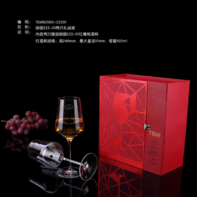 编号:TBWBZ002-22201 品名:丽固222-01两只礼品装 品牌:TBW礼盒 类型:TBW礼盒 系列:德国丽固系列 规格: 包装:内含两只德国丽固222-01红葡萄酒杯。红酒杯规格:高 240mm,最大直径 91mm,容量 502ml