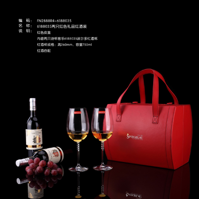 编号:FN2888R4-6188035 品名:6188035两只装红色礼品红酒装 品牌:TBW礼盒 类型:TBW礼盒 系列: 诗杯客乐系列 规格: 包装:红色皮盒,内含两只诗杯客乐6188035波尔多红酒杯, 酒杯规格:高260mm,容量750ml。 红酒自配